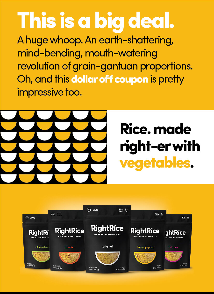 What’s a brand new, category-disrupting product demand? A brand-new, category-disrupting voice—one that treats it with all the reverence due to a sensible side dish born in the Bay Area’s cradle of innovation. We helped launch RightRice from social and print, to packaging and influencer kits. Hell, we even threw a coupon in there.